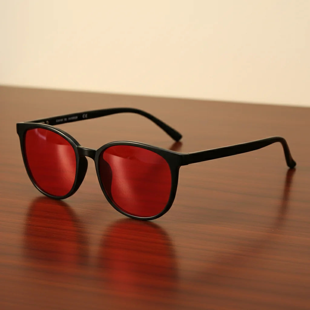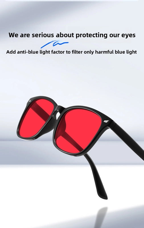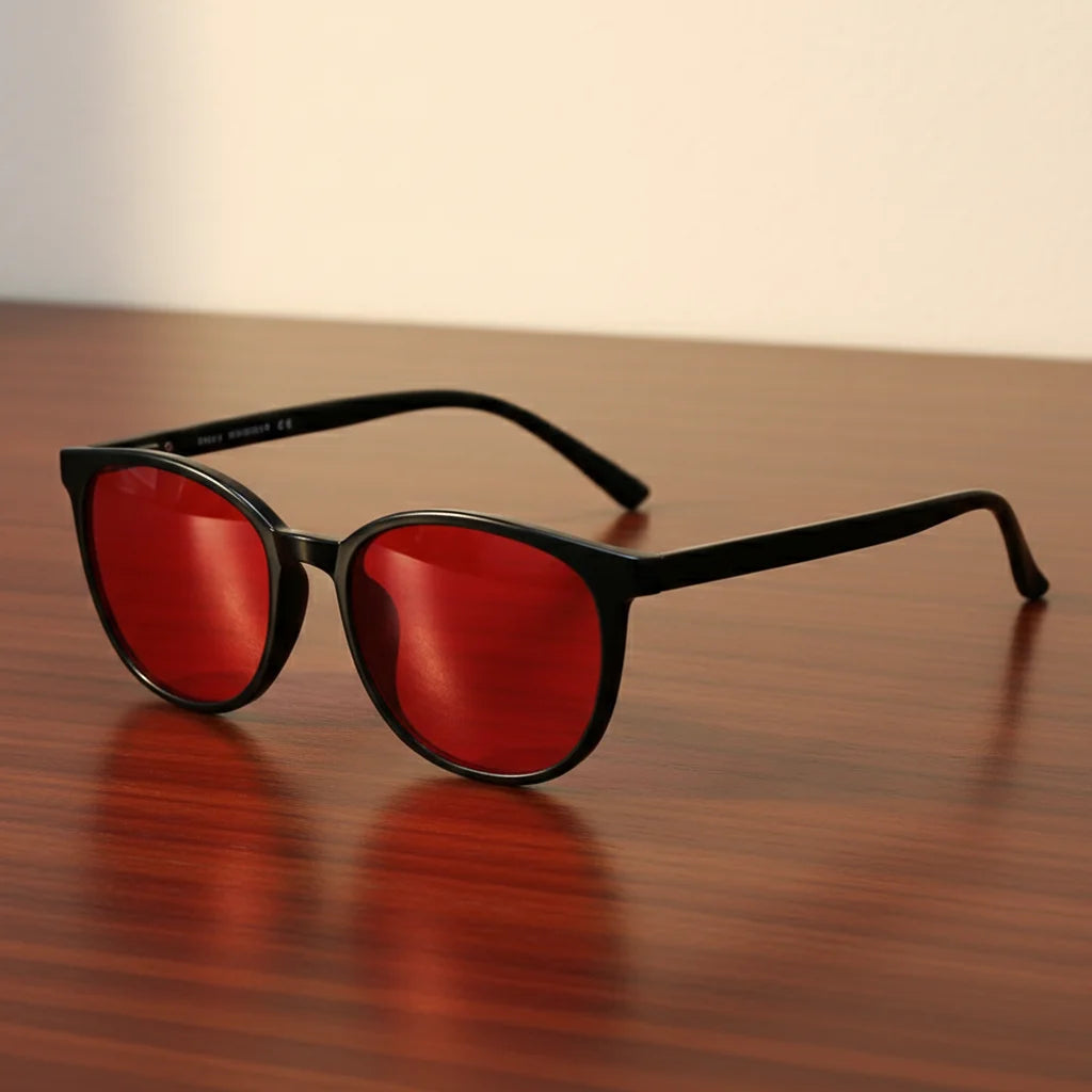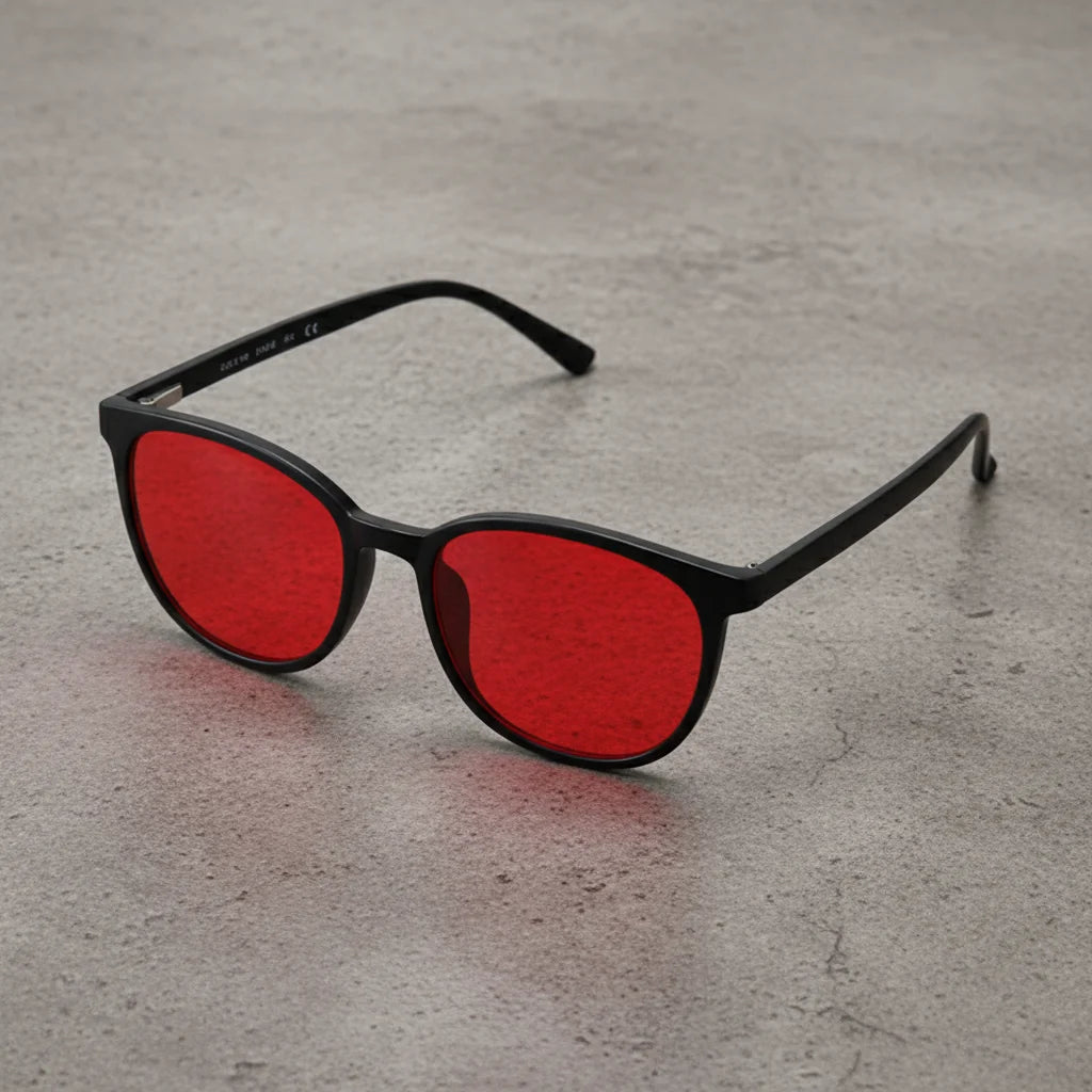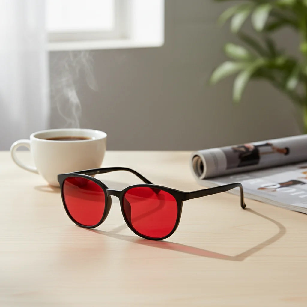 These aren't just glasses; they're a statement. The sleek black frame and bold red lenses complete your vibrant look, empowering every pursuit with undeniable clarity and zest.