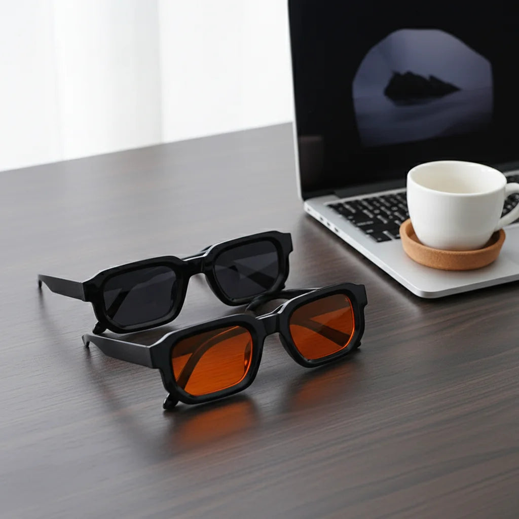 Our classic dark lenses offer an effortlessly chic vibe for any occasion, while the vibrant orange lenses add a playful pop and distinctive flair. Both options ensure your vision is protected with style.