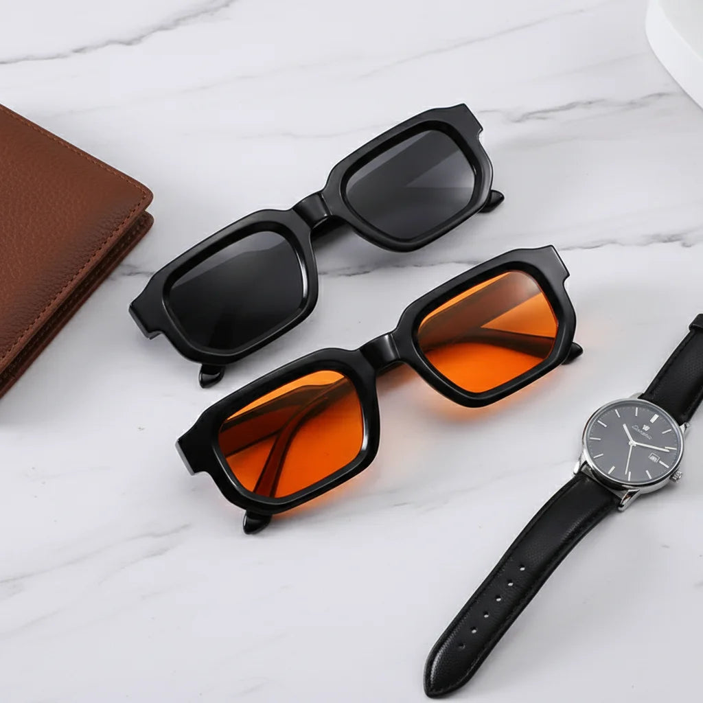 Choose between classic dark or vibrant orange lenses to make your statement. These frames are curated to ensure your look is always distinctive, never just a trend.