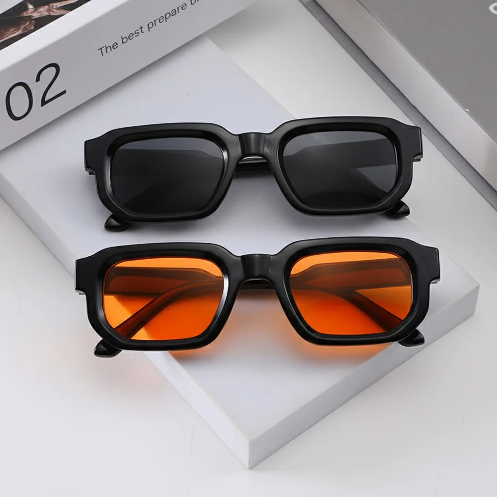 Explore the iconic square frames, choosing between a timeless dark lens for classic elegance or a vibrant orange for a playful, radiant flair. Each pair elevates your look effortlessly.